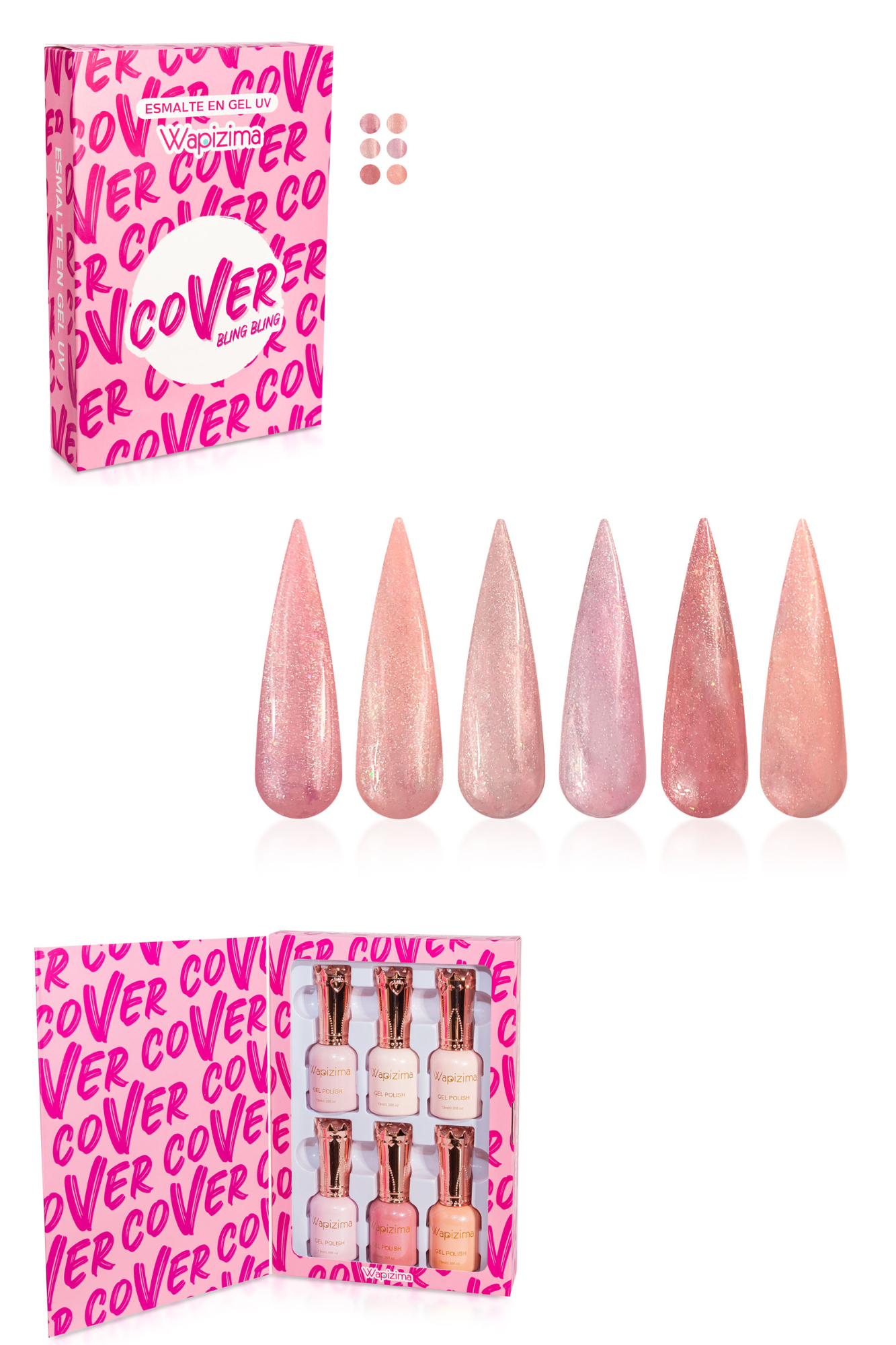 En esta sección podrás visualizar lo que ofrecen las marcas de geles Wapizima, una amplia gama de productos para el cuidado y decoración de uñas, destacándose por sus colecciones de 6 piezas de alta calidad y diseño innovador.