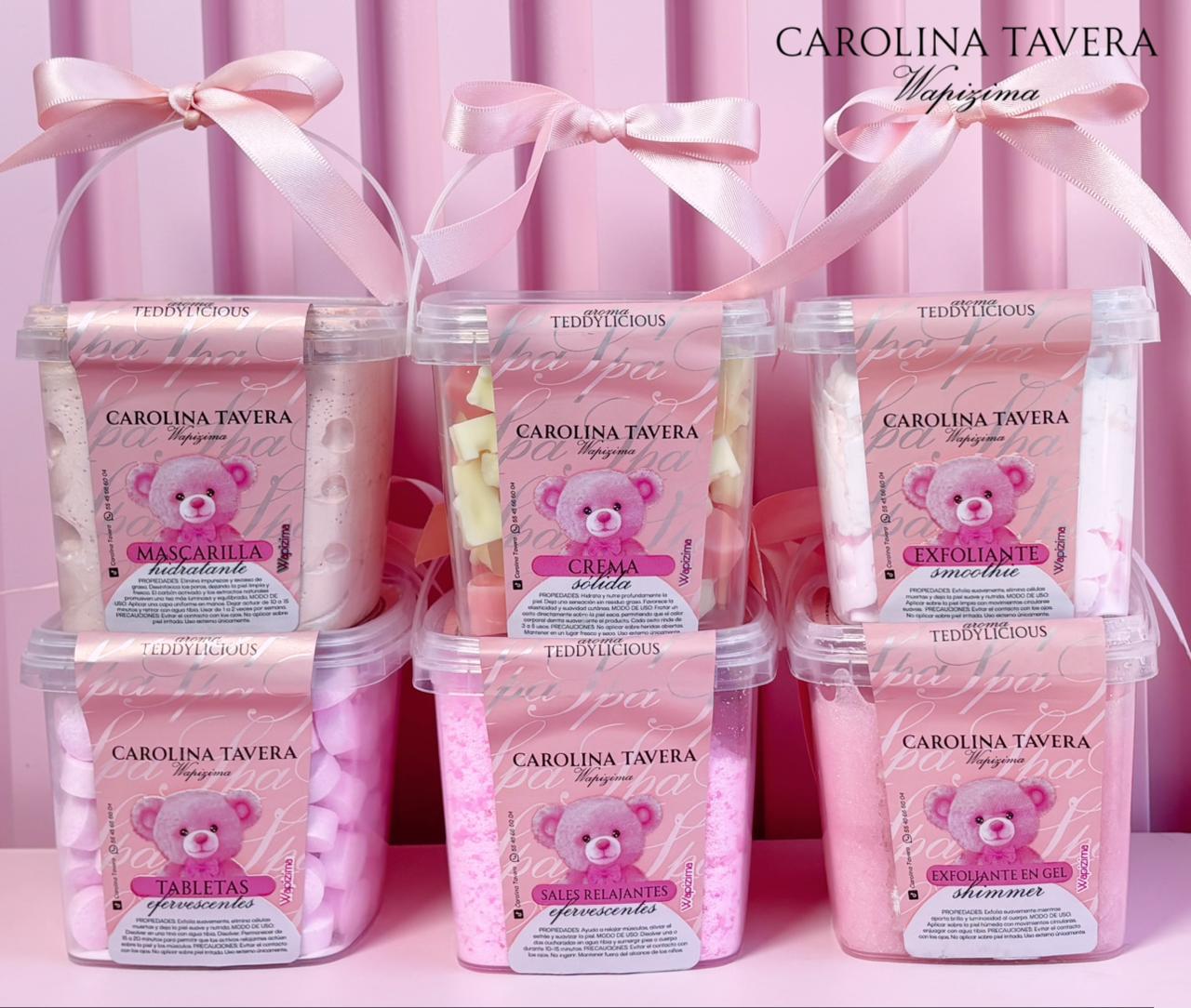 ✨ Línea SPA Teddy – Wapizima x Carolina Tavera ✨ Una colección creada para consentir tus sentidos con texturas suaves, aromas deliciosos y un toque brillante que transforma cualquier rutina en un momento súper cute 💕🐻✨. Inspirada en la ternura y el brillo característico de Teddy, esta línea te envuelve en una experiencia dulce y relajante.